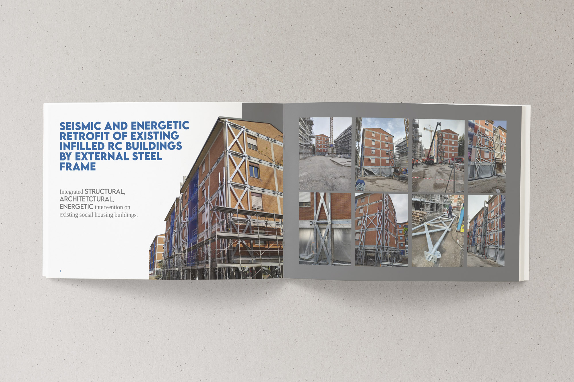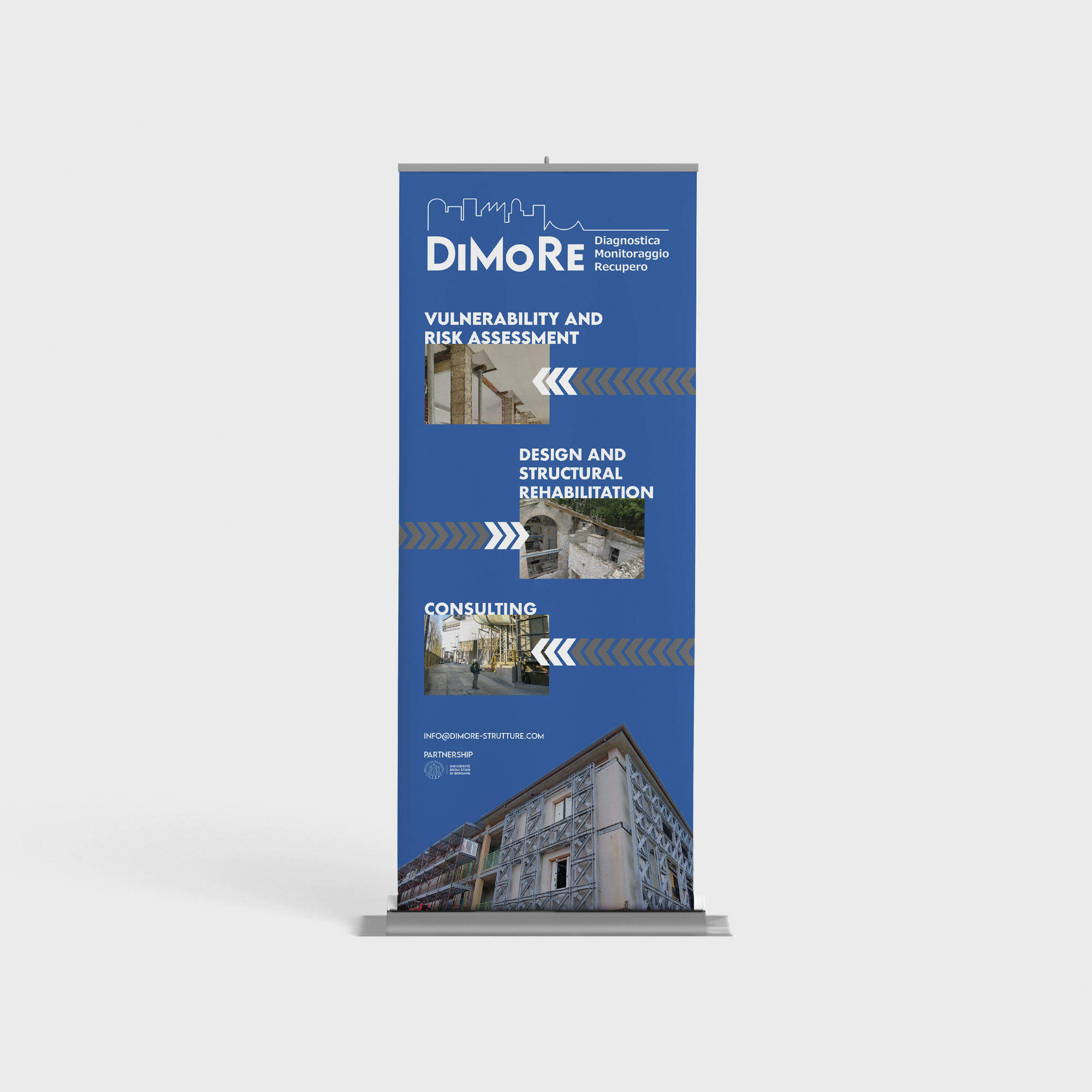 Creazione di materiali di presentazione per lo studio Di.Mo.Re, studio che opera nel settore dell’ingegneria strutturale e sviluppa soluzioni innovative per edifici e strutture sia nuove che esistenti, comprese le costruzioni storiche.