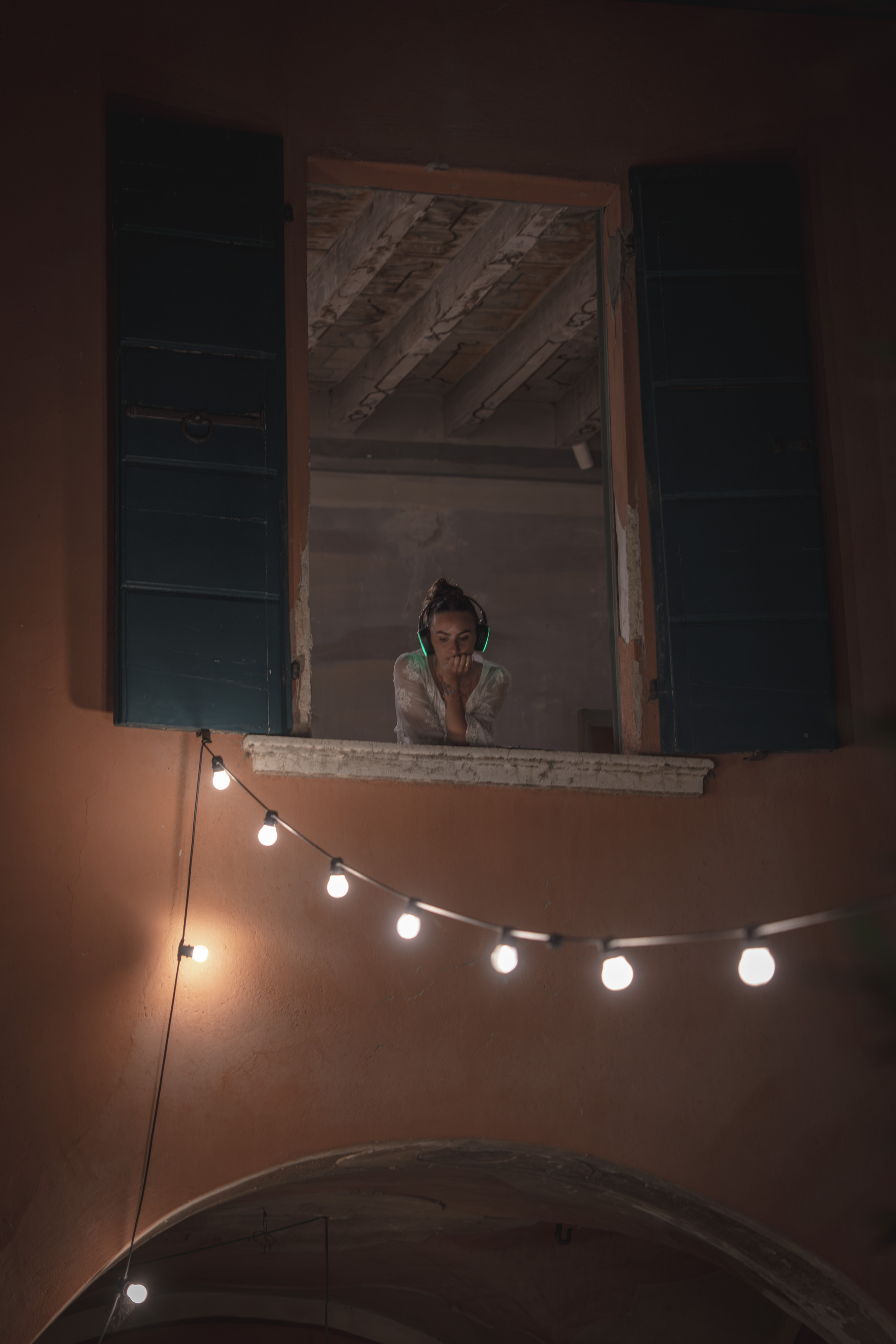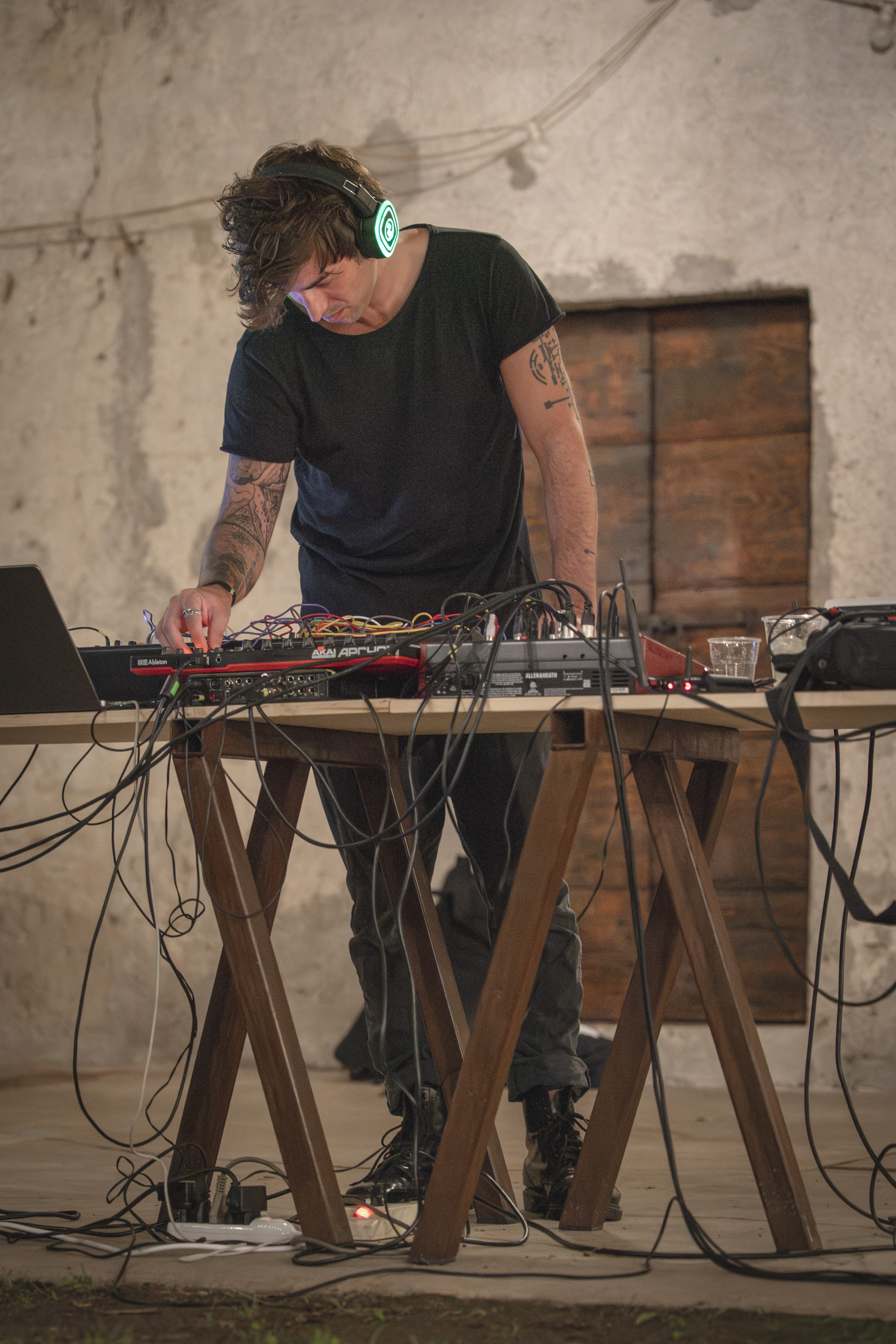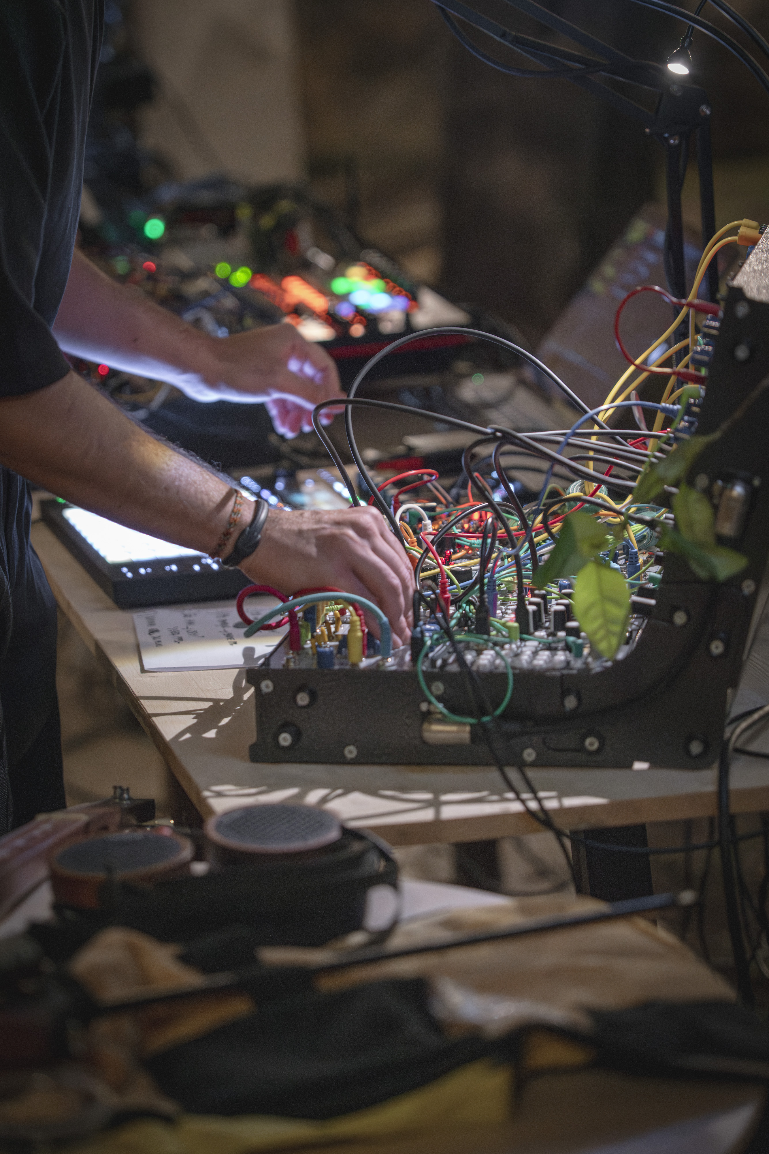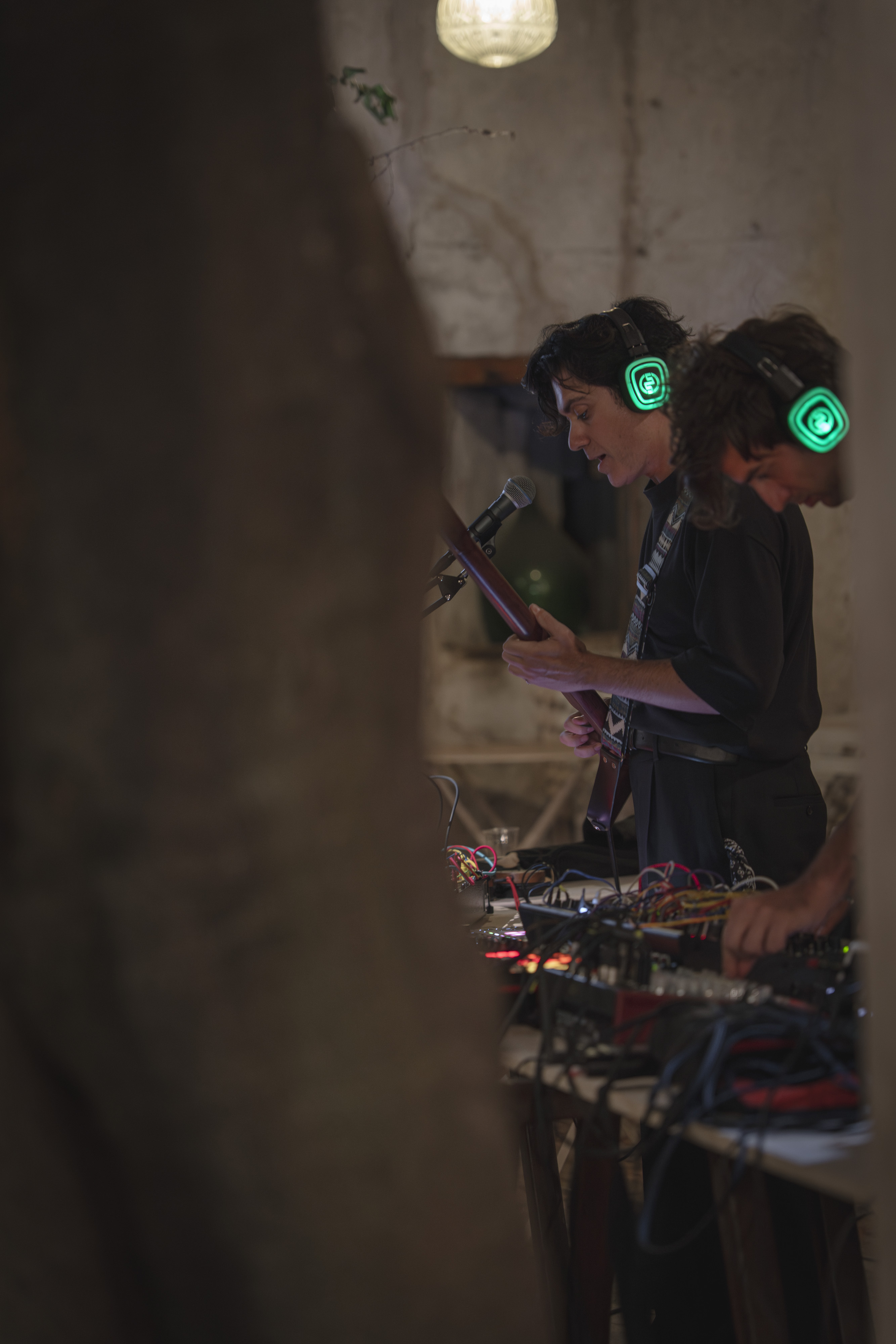 Documentazione della performance live IN ABSENTIA di Hidden Sounds (Riccardo Tesio e Alessio Mosti) + Francesco Fabris. Un universo bellissimo fatto di suoni e rotture e silenzi negli spazi di Leonesia – Fondazione Vittorio Leonesio, Puegnago del Garda.