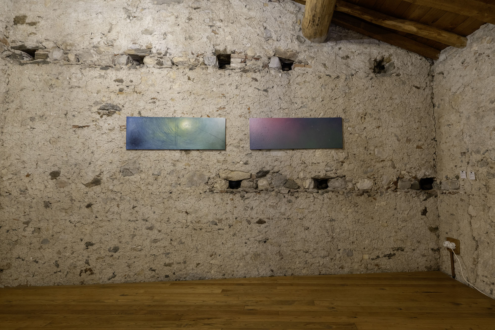 Vedute della mostra personale di Jasmin Prezioso Volare oltre la lucea cura di Mariacristina Maccarinelli e Kevin McManus per la rassegna Scintille d’Arte negli spazi di Leonesia – Fondazione Vittorio Leonesio, Puegnago del Garda.